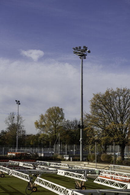 The Ulrich-Haberland Stadium is home to Bayer 04 Leverkusen's women's Bundesliga team. To meet UEFA's Level-D requirements for hosting European Cup matches, the stadium's lighting needed to be upgraded with LED technology and the brightness increased. The modernization also took into account the impact on nearby residential areas and the highway, considering issues like glare and ambient light levels.