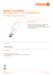 | Product remark | All technical parameters apply to the entire lamp, Due to the complex production process for light-emitting diodes, the typical values shown for the technical LED parameters are purely statistical values that do not necessarily match the actual technical parameters of each individual product, which can vary from the typical value |