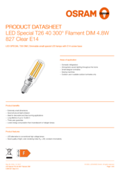 LEDSpecialT2640300°Fi lamentDIM4.8W827ClearE 14en