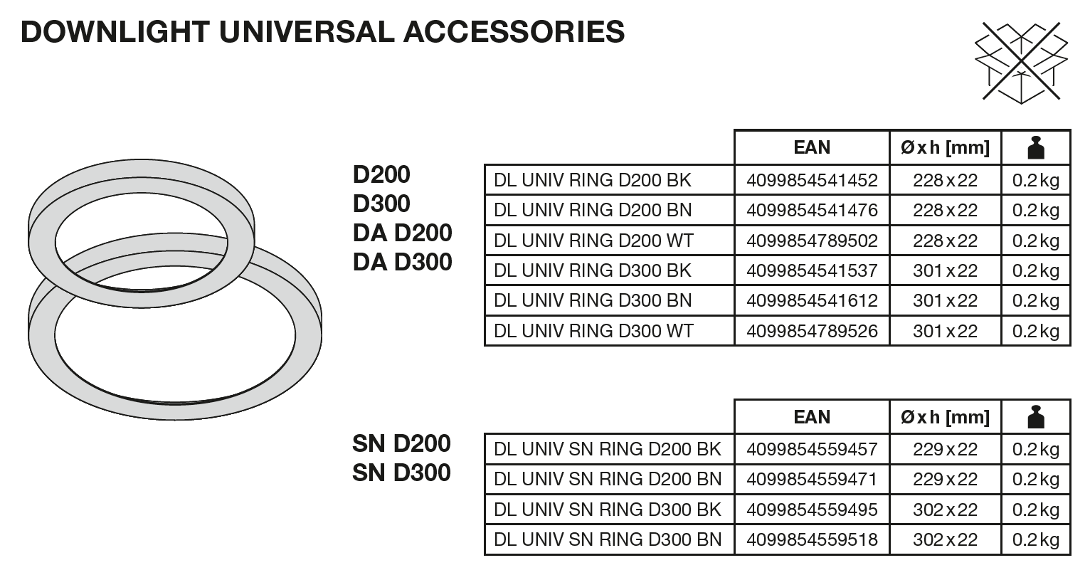 | Tuotekoodi | Pakkausyksikkö (kpl/yksikkö) | Mitat (pituus x leveys x korkeus) | Kokonaispaino | Lukumäärä |