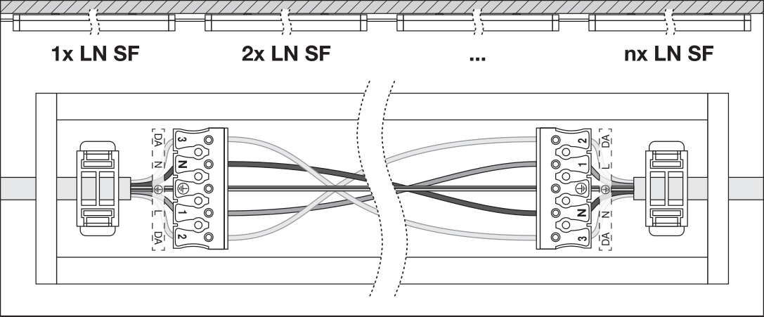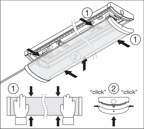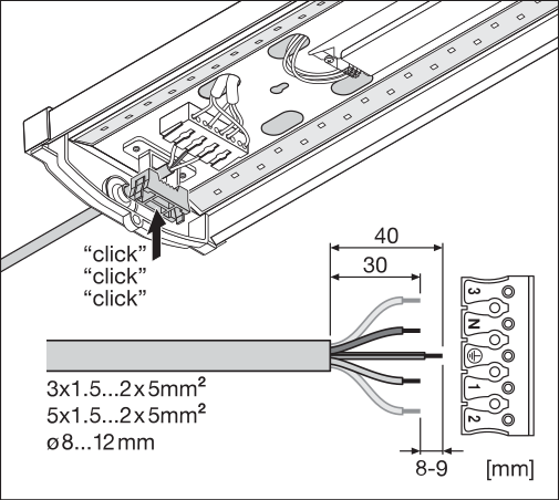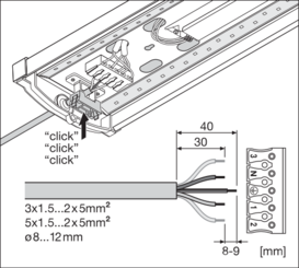 • Johdon sisääntulo valaisimen takaosassa ja jokaisessa päätykappaleessa helpottamaan asennusta